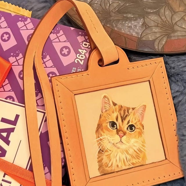 Hand-Painted Leather Pet Portrait Bag Tag: Custom Dog & Cat Memorial Charm
