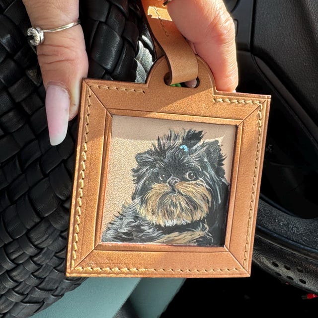 Hand-Painted Leather Pet Portrait Bag Tag: Custom Dog Cat Memorial